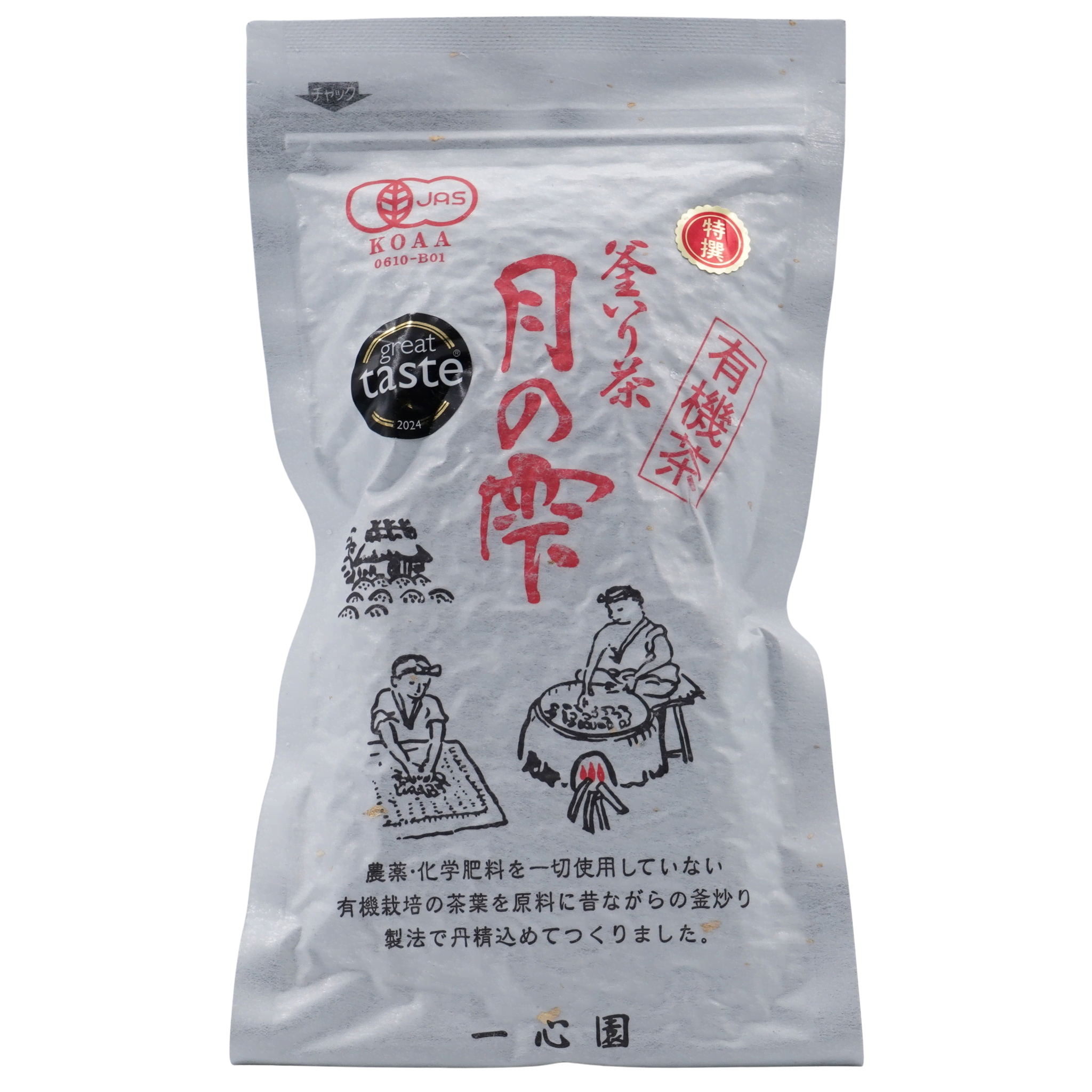ohne chemische Zusatzstoffe, ohne geschmacksverstärkende Zusatzstoffe, ohne Konservierungsmittel. und mit viel Liebe angepflanzt, gezüchtet und geerntet. Nach der Ernte werden die Teeblätter nach alter traditioneller, japanischer Herstellungsmethode verarbeitet. Der Tee enthält viele Vitamine. JAS Zertifiziert